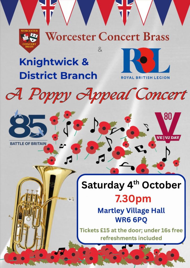 “Had a great evening watching Worcester Concert Brass play A Poppy Appeal Concert at Martley Village Hall last night, and it sounded like the rest of the audience did too. Many thanks to the band for another great performance